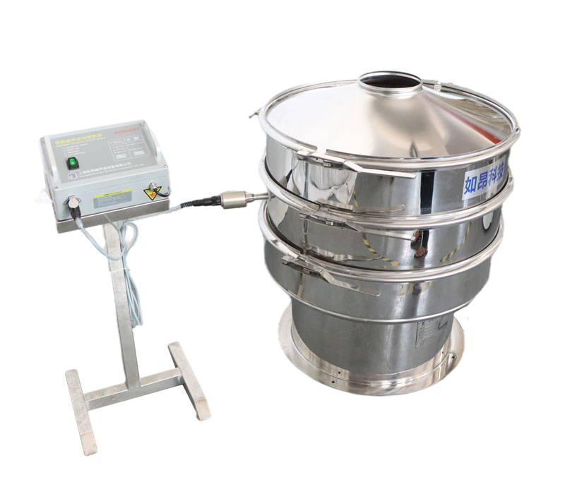 超聲波篩分機由超聲波發生器、換能器、共振環三部分組成。超聲波發生器(電源)產生的高頻電振蕩由換能器轉換成高頻超聲波,這些超聲波傳到共振環上使共振環產生共振,然后由共振環將振動均勻傳輸至篩面。篩網上的物料在做低頻三次元振動的同時,疊加上超聲波振動,既可有效阻止網孔堵塞,又可使篩分產量和質量,解決了強吸附性、易團聚、高靜電、高密度、輕比重等篩分難題。在性能上實現大的成果。RA系列超聲波振動篩篩分精度高,產量可增加;600目以上工業精細生產篩分需要!超聲波振動篩工作原理是在傳統的振動篩上疊加一個高頻振動,讓物料的加速度變大,有效解決物料對篩網的吸附,讓物料快速過網。