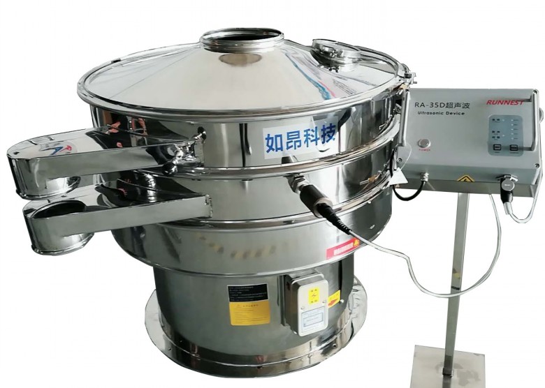 附加在RA系列超聲波振動篩篩網上的超聲振動波(機械波),使超微細粉體接受巨大的超聲加速度,從而抑制粘附、摩擦、平降、楔入等堵網因素,提高篩分效益和清網效益。